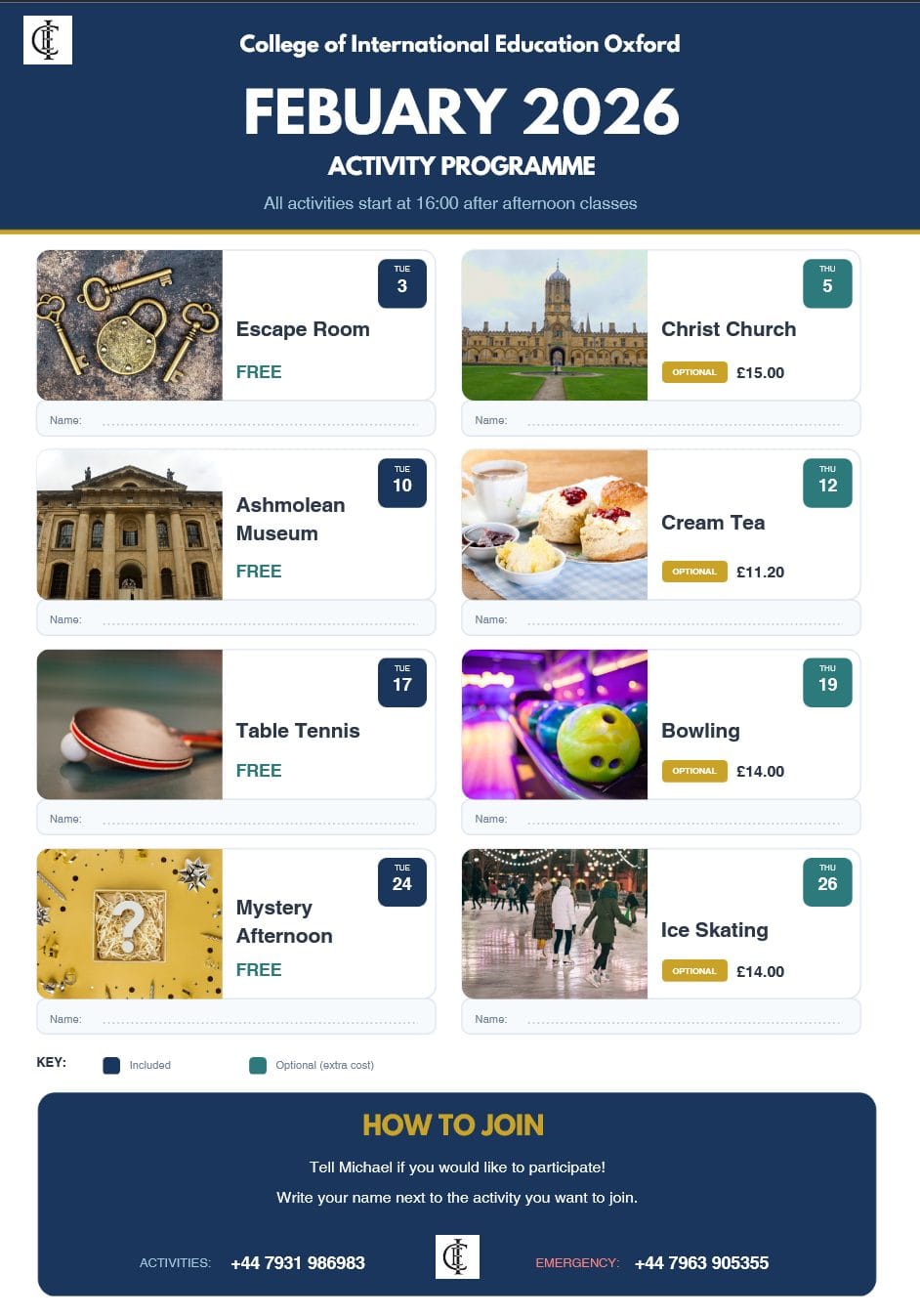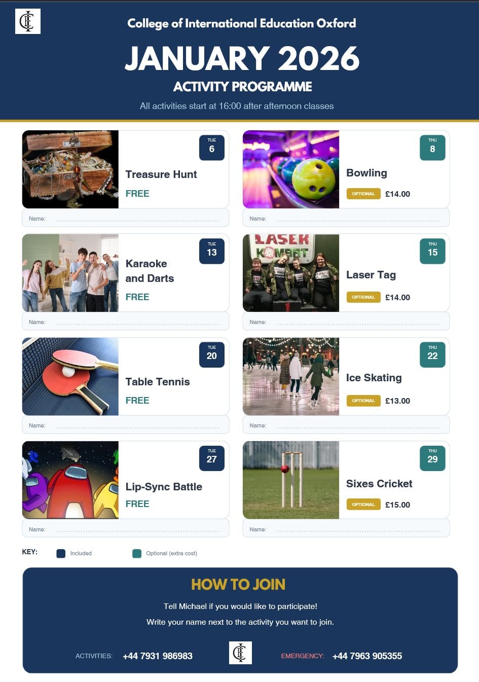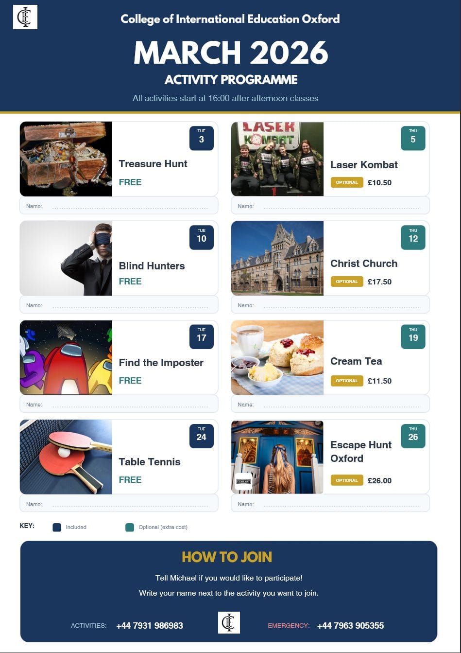 Downloadable activity programmes for the coming months, giving you a clear view of what’s happening beyond the classroom.